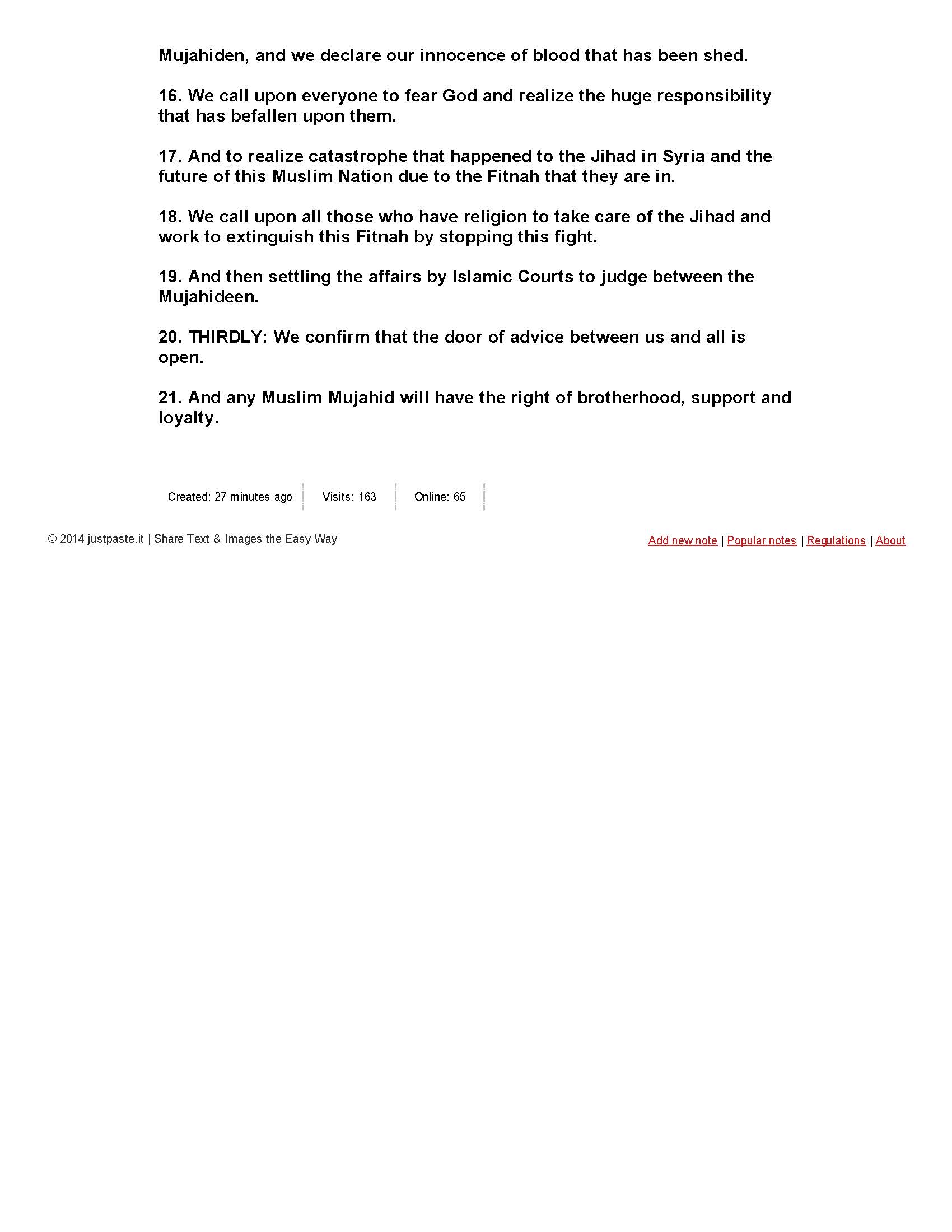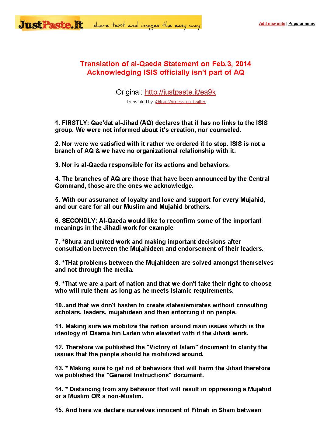 This brings us up to this week’s declaration that AQC has no ties to ISIS. The original Arabic version is here, and an English translation here, or in the images below: