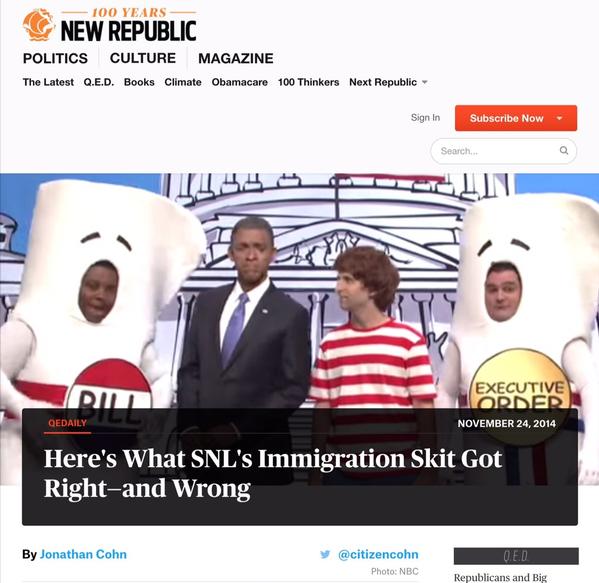 Hey, did you hear? Saturday Night Live did a show, on Saturday! Saturday night, in fact! OK, that seems pretty predictable, but then did you know that they did a sketch on this sketch comedy show? About immigration? And in this sketch they made some jokes about Barack Obama’s recent executive order by playing with the beloved children’s classic, “Schoolhouse Rock”?