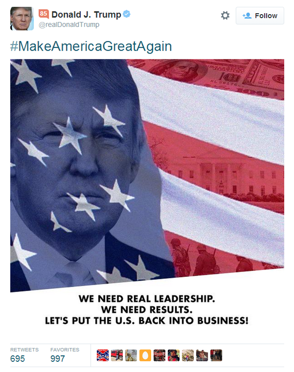 People who know their German WWII uniforms much better than yours truly say that these are SS uniforms. Trump appears to have used this stock photo, so at least they’re SS re-enactors and not actual SS soldiers. And, you know, in Trump’s defense, the tags on that photo only include terms like “fascism” and “German culture,” so there was really no way to know that those guys weren’t cosplaying American GIs.