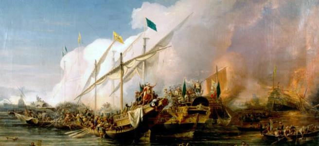 But we’re going to ignore those more recent events and go back to 1538 to talk about the (naval) Battle of Preveza, which was the decisive battle in the third of seven Ottoman-Venetian wars (most of which didn’t go well for the Venetians) that took place between the 15th and 18th centuries. This war ran from 1537 to 1540 and initially involved a joint invasion of Habsburg Italy by the Ottomans (from the south) and their new French allies (from the north). The French invasion stalled out, though, and the Ottomans withdrew their forces from Italy but continued the war nevertheless.
