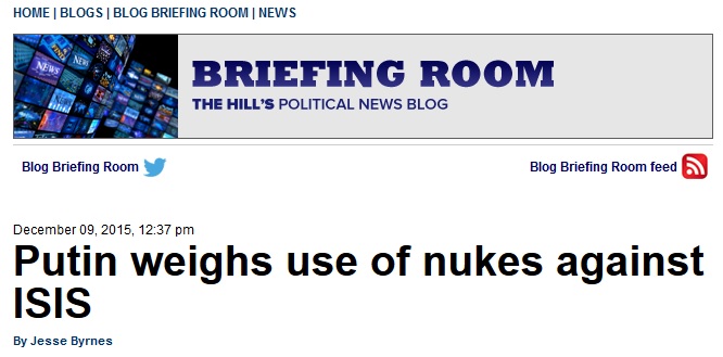 Vladimir Putin used the words “nuclear” and “warhead” in a conversation about Russia’s military action in Syria yesterday, and so that created a bit of a stir on the internet tubes. For example, here’s Fox News’s level-headed take: