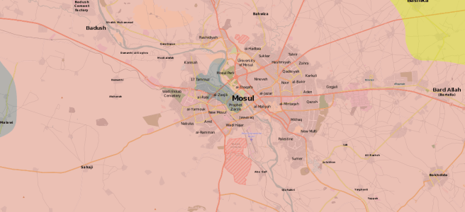 Iraqi forces continue to grind away against the last few western Mosul neighborhoods still in ISIS’s hands. They’ve made considerable, and rapid, progress since opening up a new front in northwestern Mosul, advancing so far east that they’ve reduced ISIS to a narrow strip of territory along the west bank of the Tigris, leading south to its Old City stronghold (see the maps at Musings on Iraq). However, with Iraqi commanders still talking about wrapping this operation up by the start of Ramadan (May 26 or 27), it’s fair to wonder how realistic they’re being. The real endgame isn’t going to start until the Old City is being attacked from multiple sides, and while ISIS’s defenses could fall apart quickly once that happens, they could also continue to hold out as they’ve done against Iraq’s federal police for weeks now.