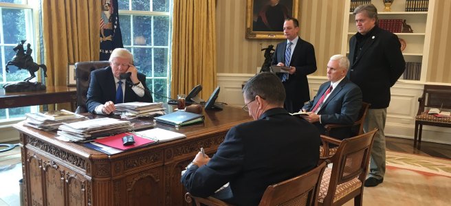 In that Prospect interview, Bannon also unequivocally ruled out a military strike on North Korea, a surprisingly sensible statement especially inasmuch as his concern seemed to be the millions of people who would quickly be killed in a North Korean retaliatory strike on Seoul. Hilariously, the Trump administration is now trying to distance itself from Bannon’s remark, with Rex Tillerson insisting on Thursday that a military option is still on the table–without mentioning the bit about Seoul. South Korean President Moon Jae-in is telling his citizens that Trump promised to consult with him before taking any military action against Pyongyang, which sounds nice except that Trump makes all manner of promises that he doesn’t intend to keep. Just ask any of his past contractors.