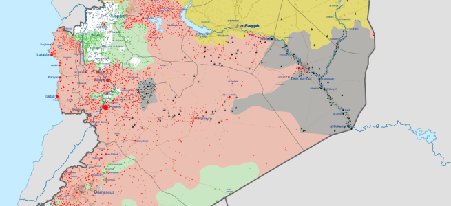 The Syrian army is continuing its operations in Deir Ezzor, where it’s attempting to secure the corridor into the otherwise besieged city that it opened on Tuesday. ISIS has been counterattacking, which has prevented the army from advancing, but so far the corridor appears to be holding. The army is also still working to clear out the remaining ISIS pocket in central Syria, which you can see below: